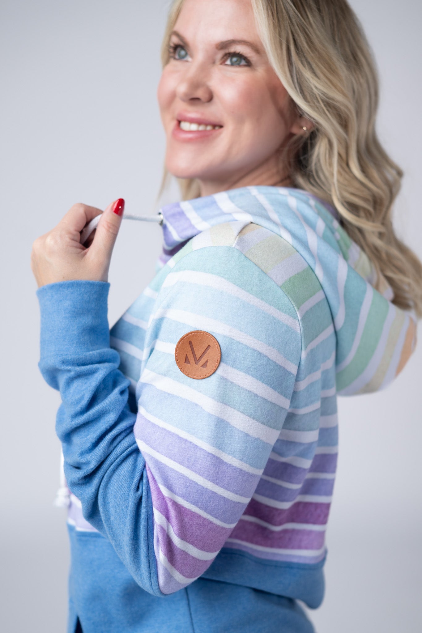 IN PRODUCTION Hailey Pullover Hoodie - Rainbow Stripes and Blue